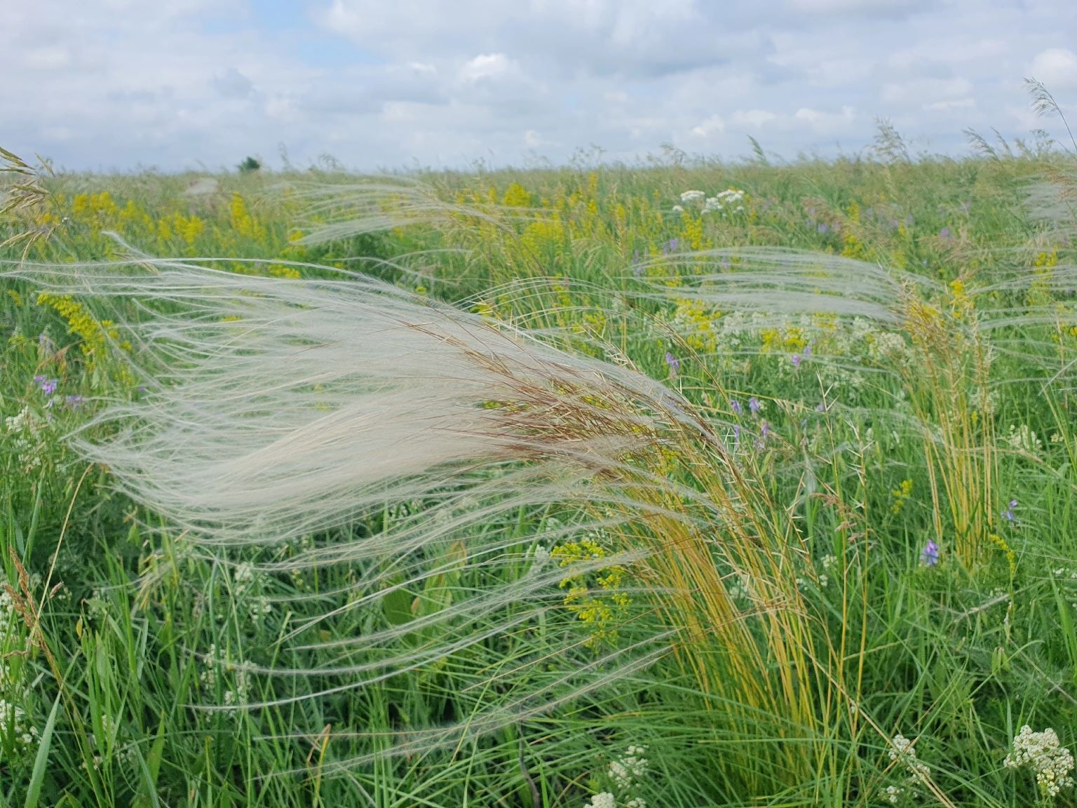 «Здесь, на Казацком участке, на территории сгоревшей осенью 2024 года луговой степи, нами были заложены пять пробных площадей для оценки динамики запасов углерода в почве и растительности в результате постпирогенной сукцессии. Еще в апреле текущего года изучаемый участок представлял собой пустошь, на которой не осталось даже ветоши и опада. В июне же степь полностью заросла сплошным травостоем высотой более метра», — рассказал руководитель экспедиции, главный научный сотрудник отдела географии и эволюции почв Института географии РАН, д.б.н. Дмитрий Карелин.